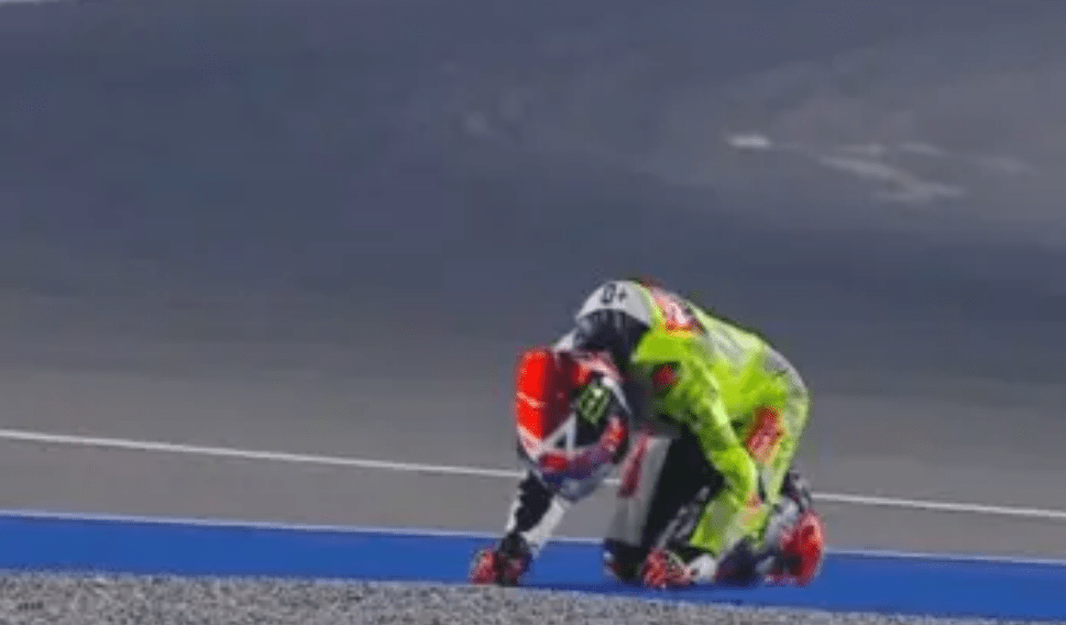 Lap 3 saw an awful crash for Fabio Di Giannantonio as he came out of turn 11. His bike seemed to hit him, and then run away, leaving Diggia to fend for himself in the middle of a live track. Thankfully he has been declared fit, with no reportable injuries.
